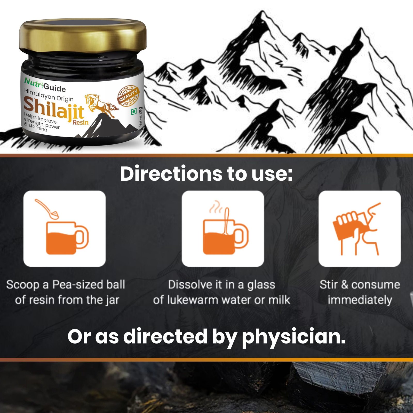 Nutri Guide ensures authentic sourcing, careful purification, and quality testing so you receive pure, potent, and safe Shilajit Resin.